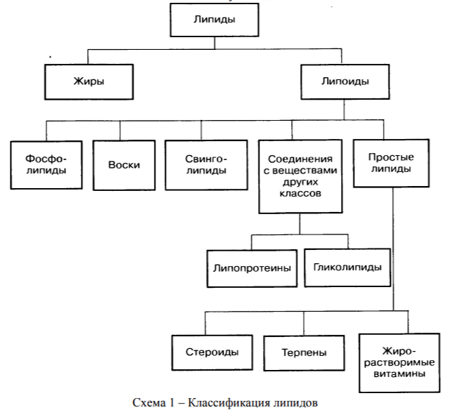 Липоиды — жироподобные вещества (см. схему 1). Как гидрофобные соединения, липоиды нормализуют работу клеточных мембран. Они входят в состав всех клеток и тканей. Особенно много их в желтке яиц, в мозговой и нервной ткани, эритроцитах, коре надпочечников, сперматозоидах и т. д.