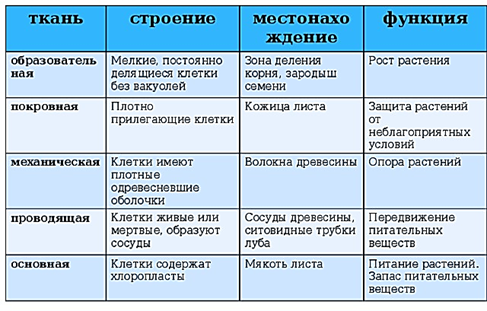 Цель урока: выяснить строение, функции и местоположение основных тканей растений;