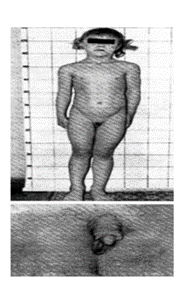 Задание 9. Определите заболевание по симптомокомплексу: характеризуется снижением или отсутствием функций щитовидной железы. При рождении: большая масса тела, грубые черты лица, большой живот, снижен обмен веществ, нарушены пропорции тела (короткие конечности), вялость.
