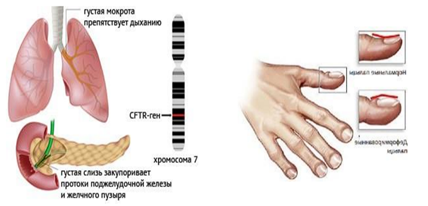 Системное наследственное заболевание, характеризующееся поражением желез внешней секреции, тяжелыми нарушениями функций органов дыхания и желудочно-кишечного тракта с образованием густой слизи. Также характерными симптомами является утолщение концевых фаланг пальцев.