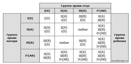Какая группа крови резус – фактор возможны для отца?