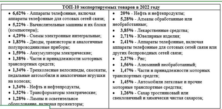 3. Определите основные товары, экспортируемые из Китая и Индии в 2022 году.