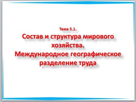 Тема 5.1. Состав и структура мирового хозяйства. Международное географическое разделение труда.