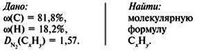Задача 1. Найти молекулярную формулу вещества, содержащего 81,8% углерода и 18,2% водорода. Относительная плотность вещества по азоту равна 1,57.