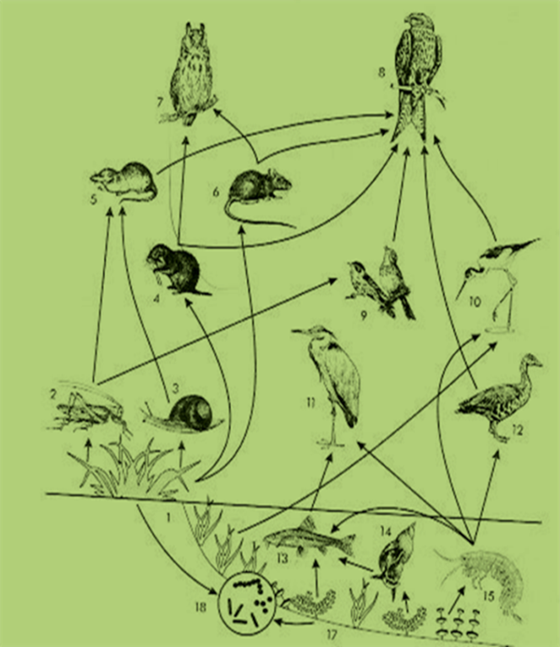 Цель: сформировать знания о цепях и сетях питания, о правиле экологической пирамиды, научиться составлять схемы передачи веществ и энергии.